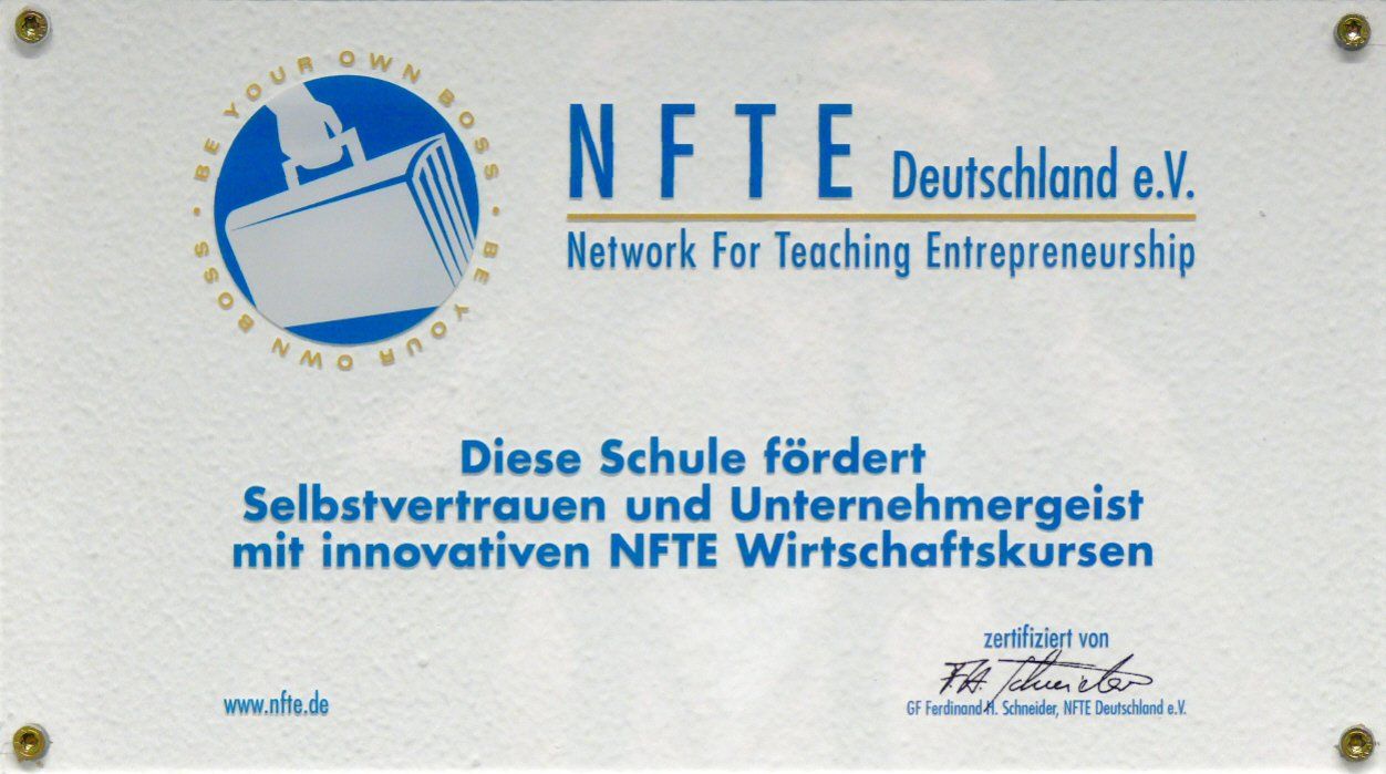 In den Bildungsgängen der zweijährigen Berufsfachschule (Handelsschule) und neuerdings auch der Informationstechnischen Assistenten (ITA) wird das Programm NFTE (Network for Teaching Entrepreneurship) durchgeführt.
